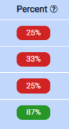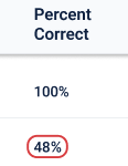 a) Within the percent correct column, all colored signifers removed and replaced with a single red outline, as it was noted that instructors only care to be warned when a question is failing 50% or more of their students