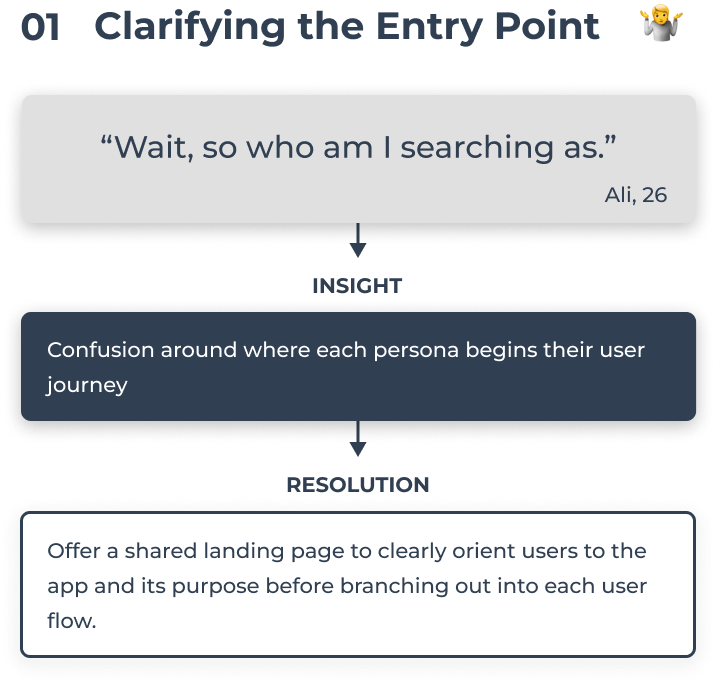 Develop each persona's experience separately. Attempting to design for varying personas simultaneously only proved to overwhelm my ideation phase and discourage the overall process.