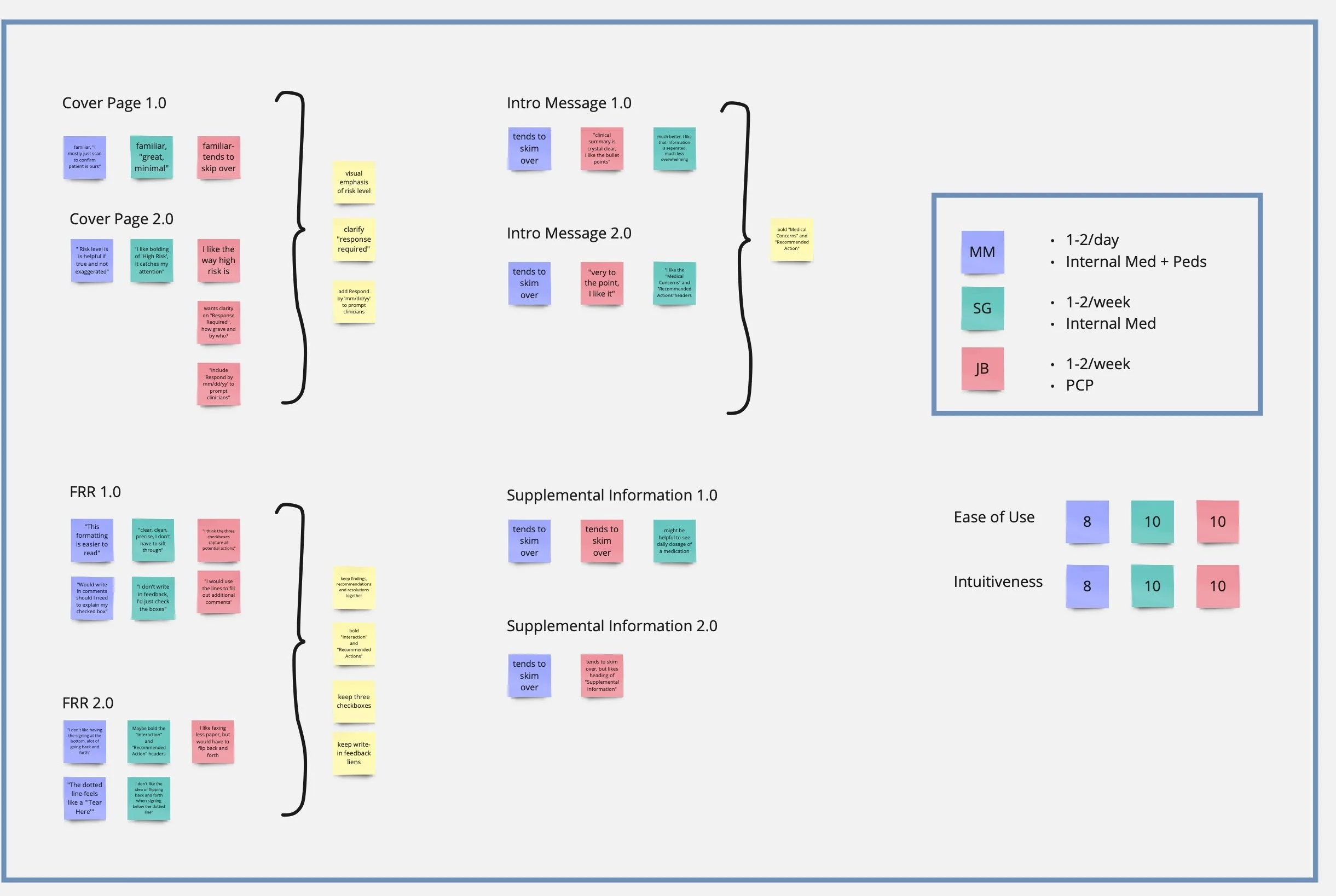 Physicians interacted with both prototypes and shared feedback on their preferences as well as how the different layouts aligned with their expectations.